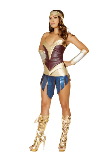 Includes Corset with Lace-Up Detail, Shorts, Belt with Panels & Headband